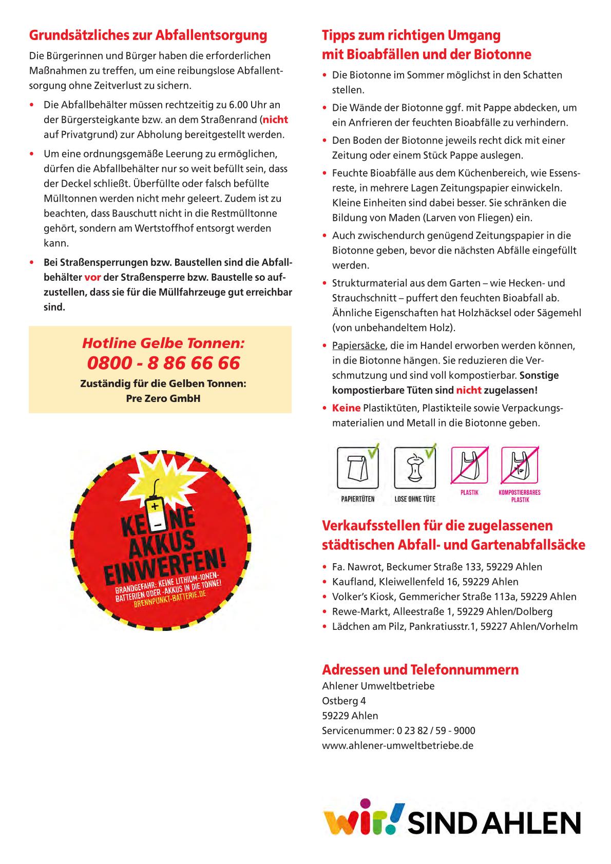 - Ahlener Umweltbetriebe, am Wertstoffhof und am Empfang, Ostberg 4