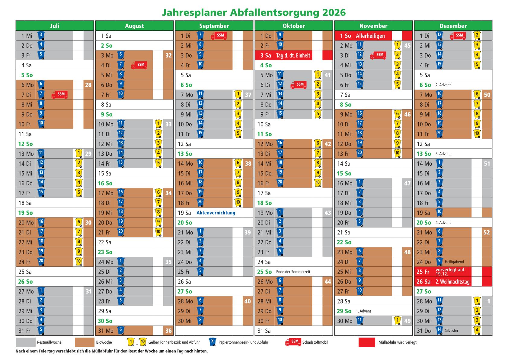 🟢 Ab morgen liegt der Abfallkalender 2026 an den bekannten Ausgabestellen aus.