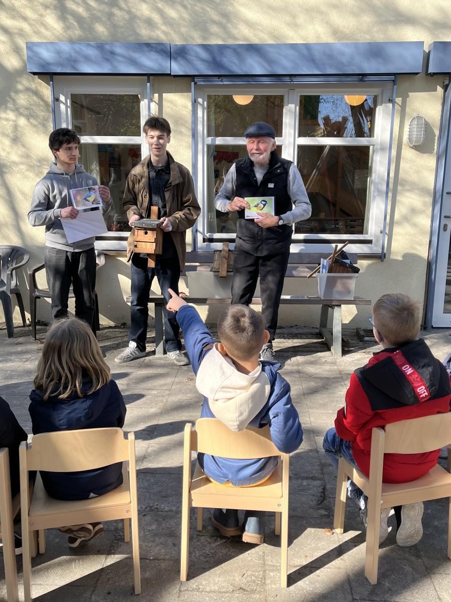 Die Kita Lilienthalweg hat bereits als erste Einrichtung vier Nistkästen erhalten. Nun wählen die Kinder gemeinsam mit den pädagogischen Fachkräften geeignete Standorte aus. Dabei haben sie auch gelernt, worauf es ankommt:
