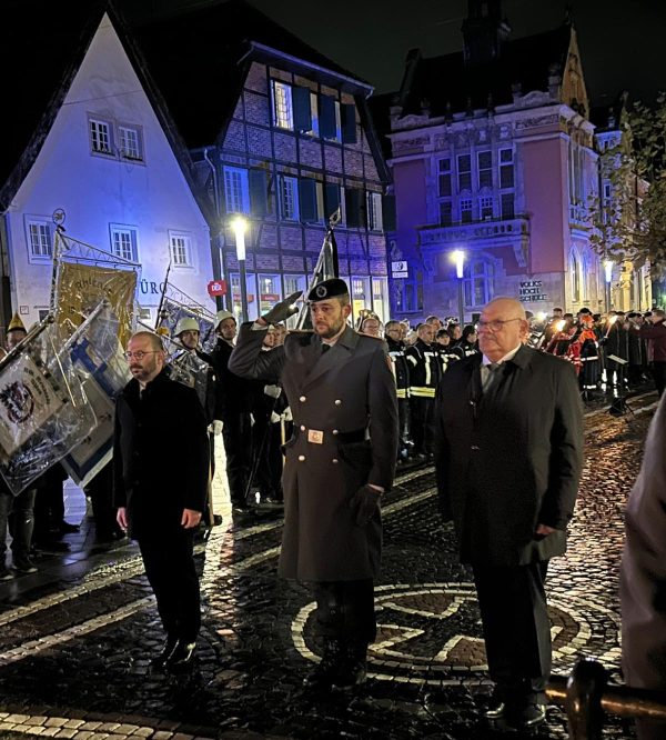 Mit eindringlichen Worten hat Bürgermeister Matthias Harman am Volkstrauertag auf dem Marktplatz der Opfer von Krieg, Gewalt und Diktaturen gedacht – und zum Einsatz für Frieden, Versöhnung und europäischen Zusammenhalt aufgerufen. Rund 300 Teilnehmende aus Vereinen, Parteien, Institutionen und Bürgerschaft waren vor Ort.