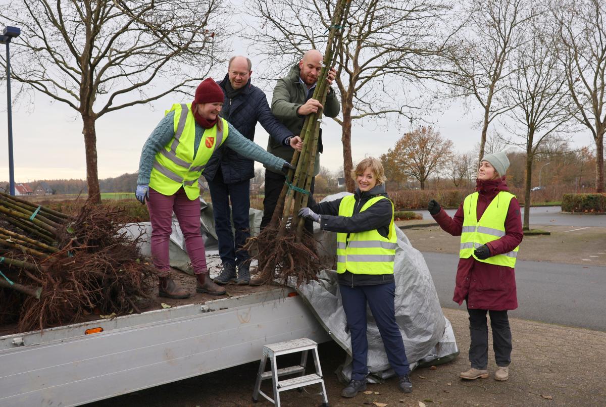 Auch Landrat Dr. Olaf Gericke und Umweltdezernent Michael Ottmann waren bei der Ausgabe dabei und wünschten den neuen Baum-Eigentümern viel Freude mit ihren Gehölzen.